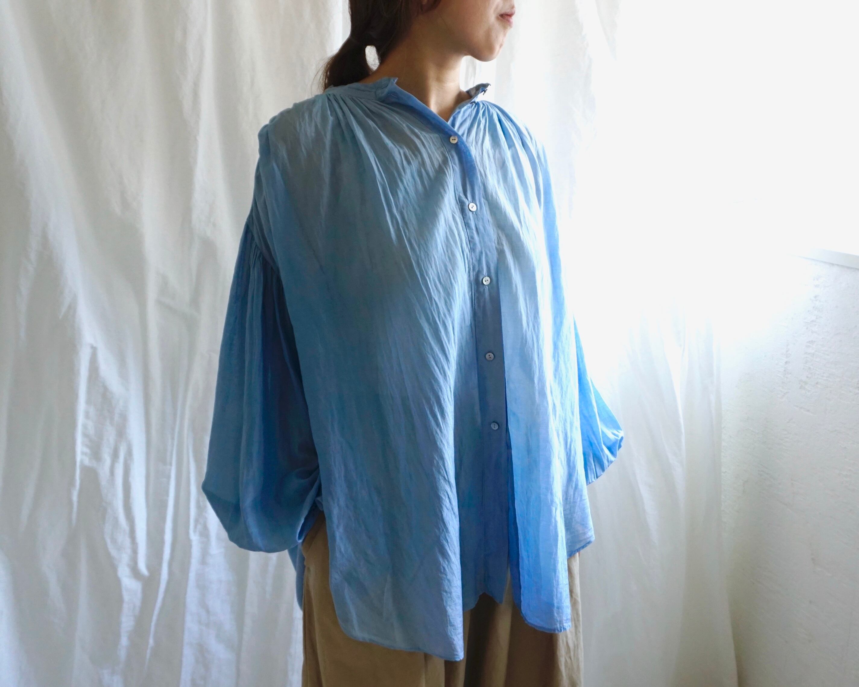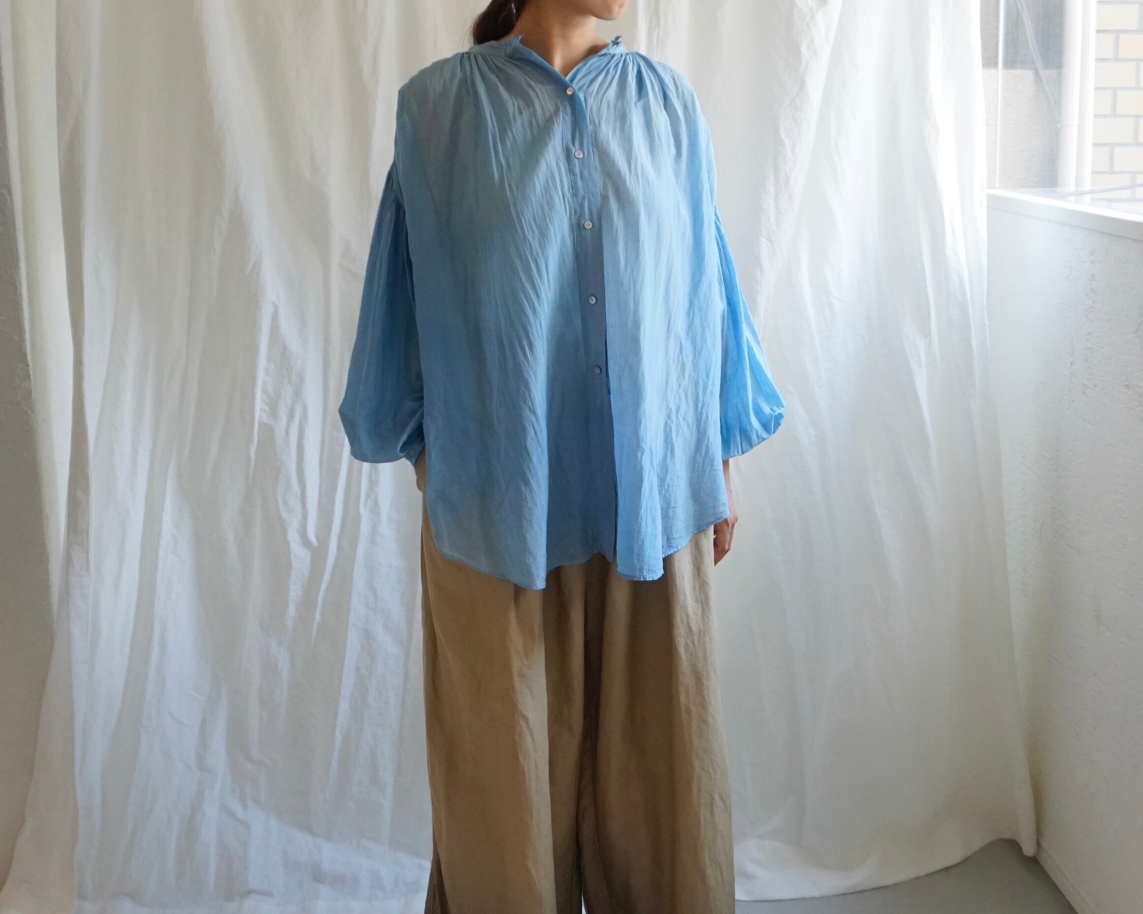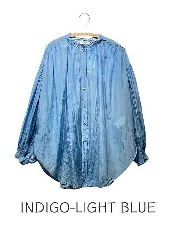 【インディゴベタ染め×綿シルクギャザーブラウス】BLOUSE128-10