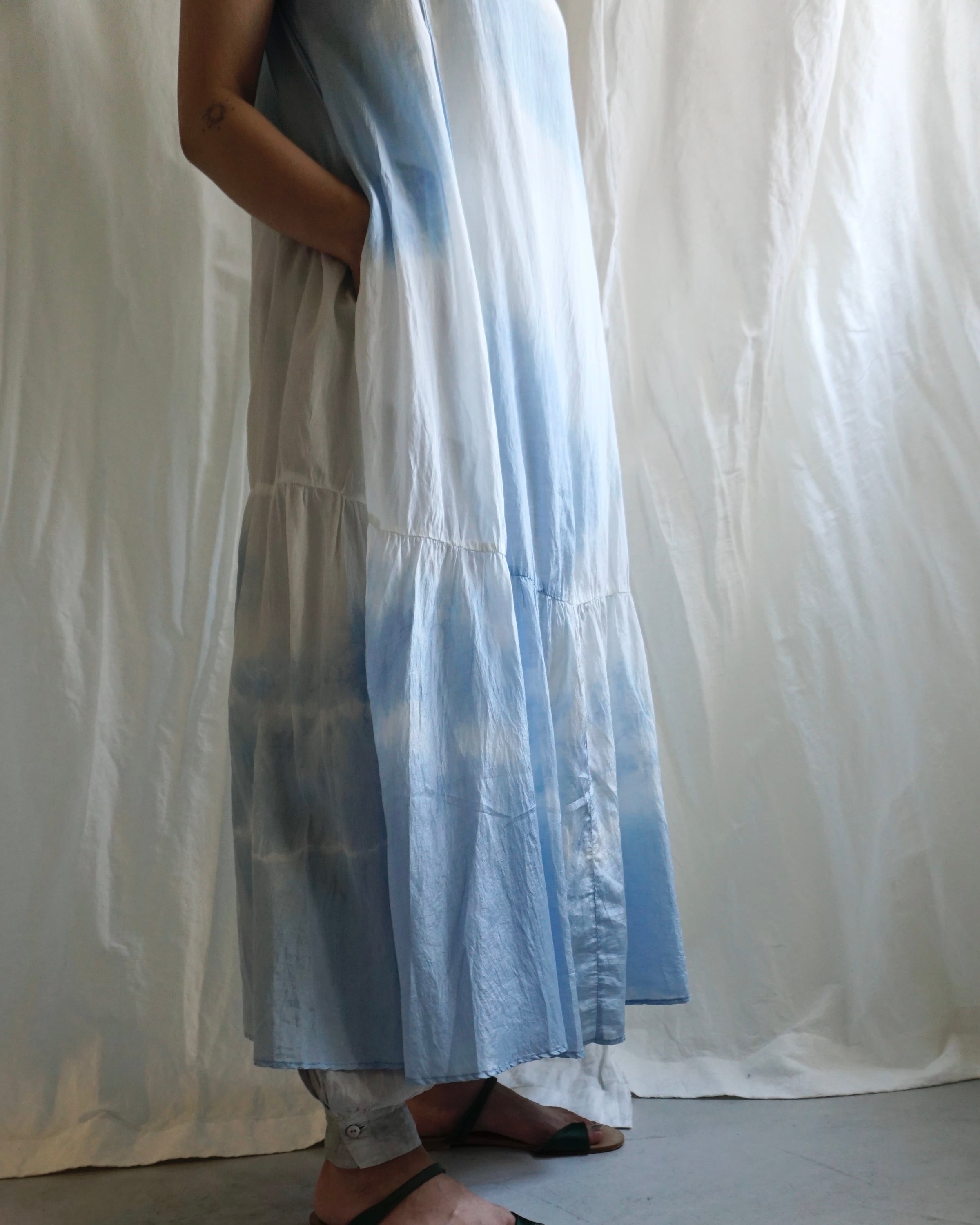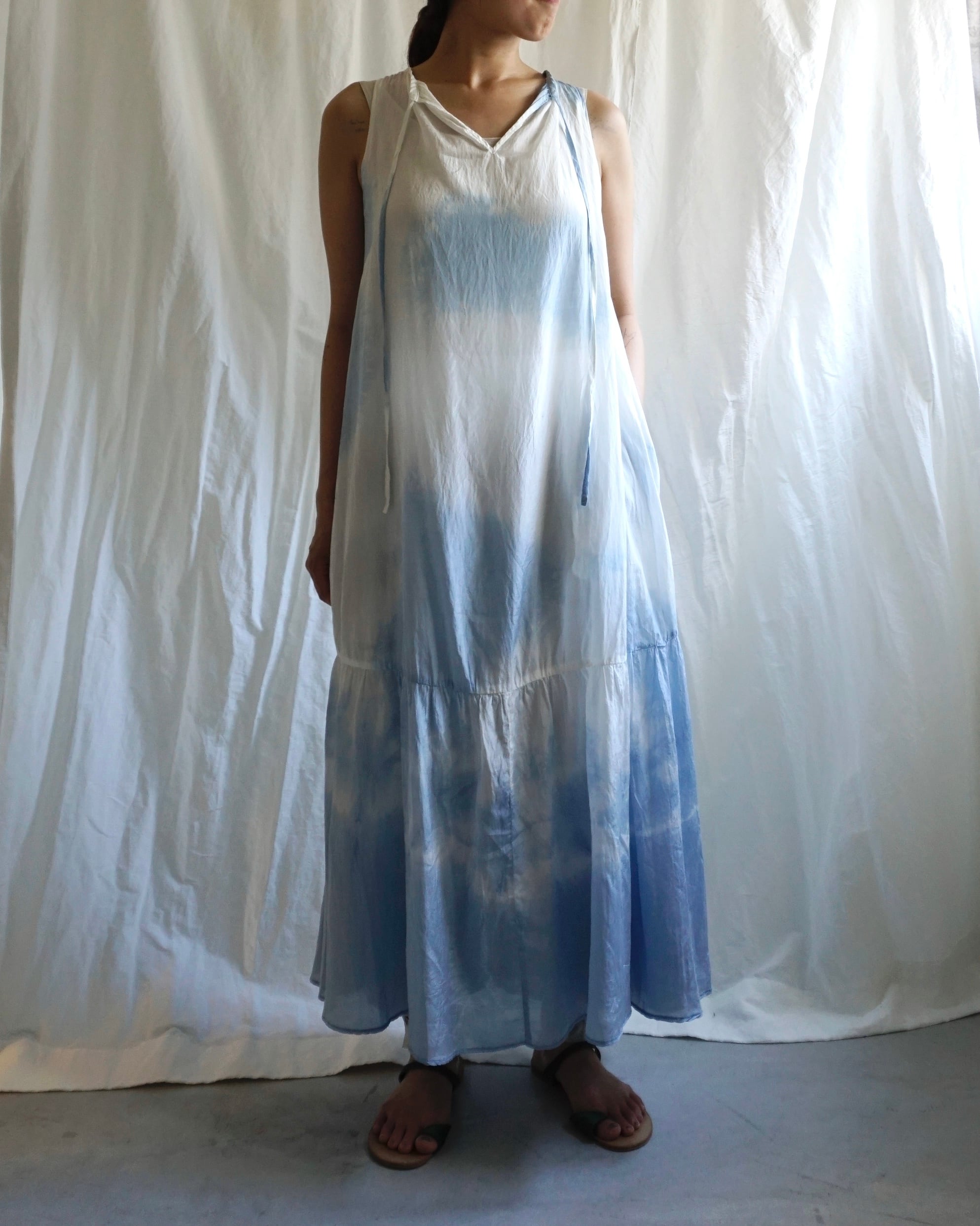 ムラ染めの前後着用可能な綿シルクワンピース。