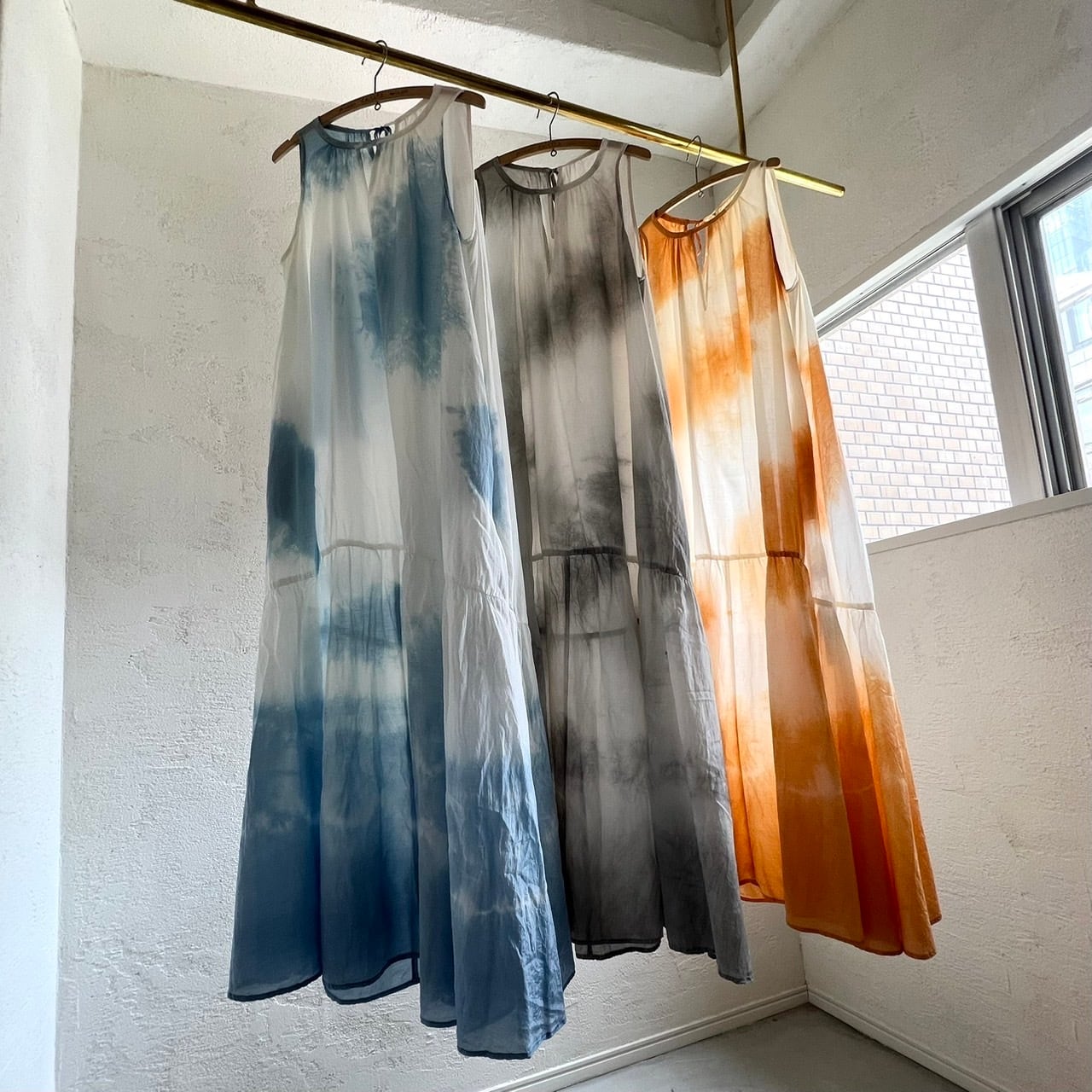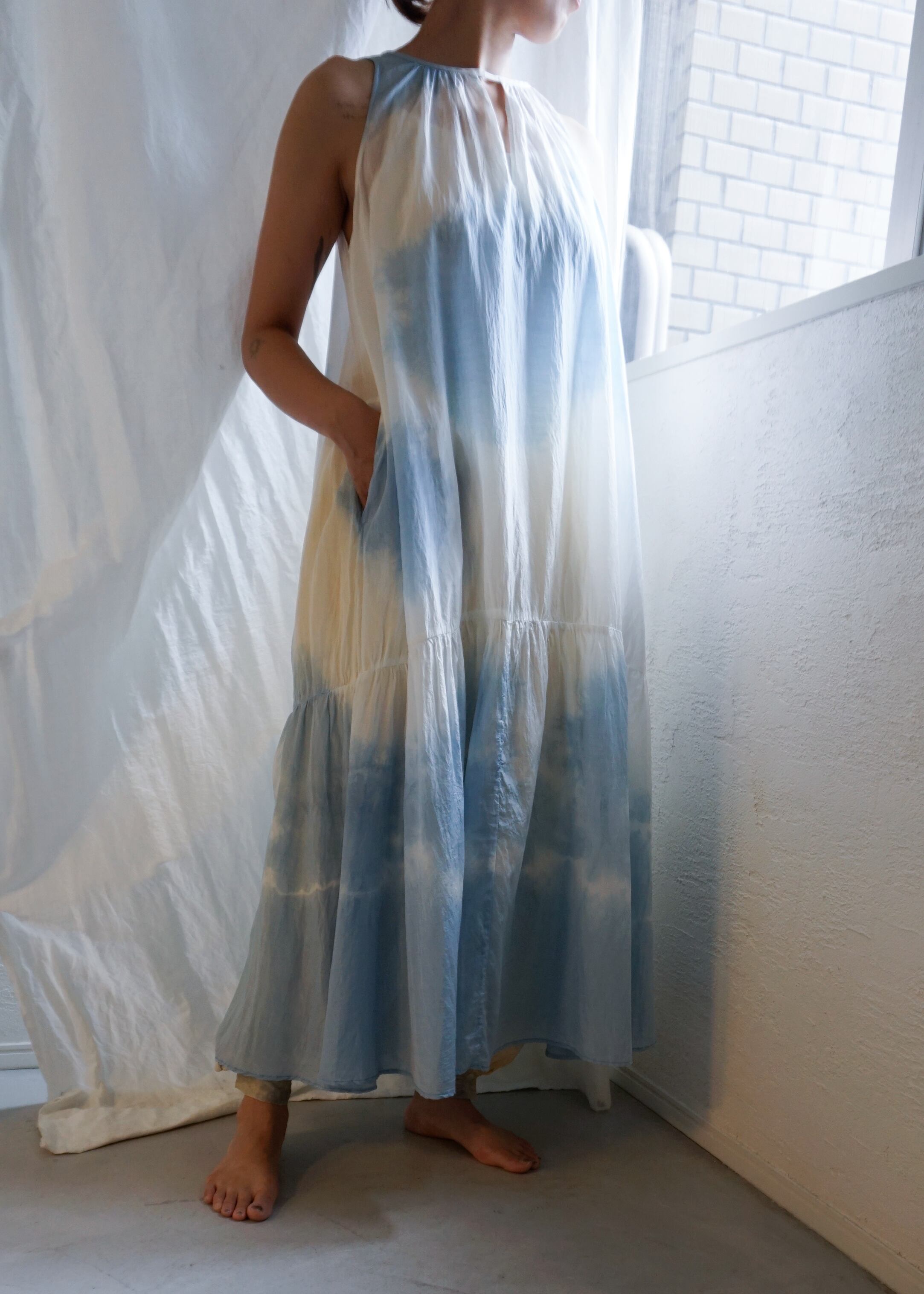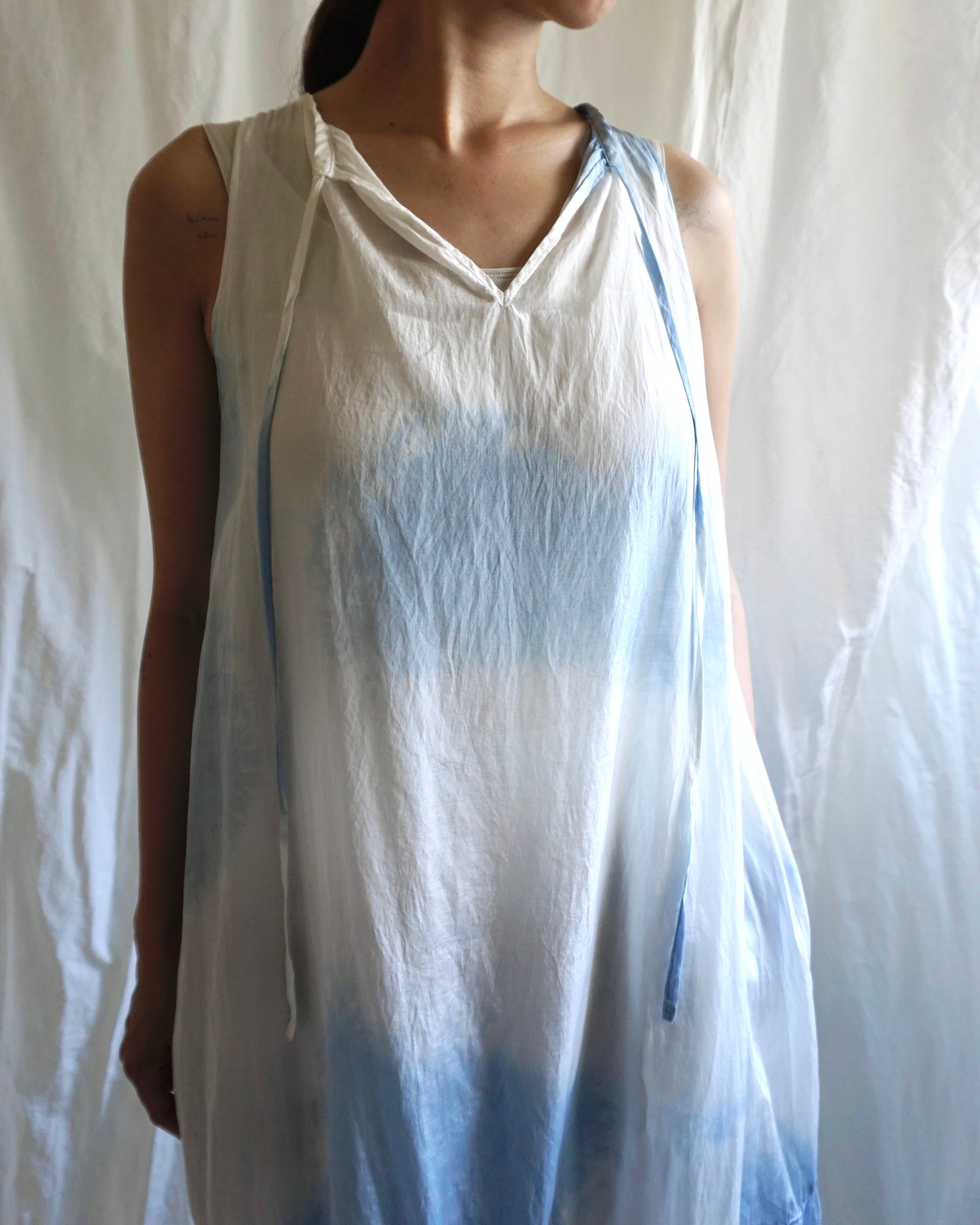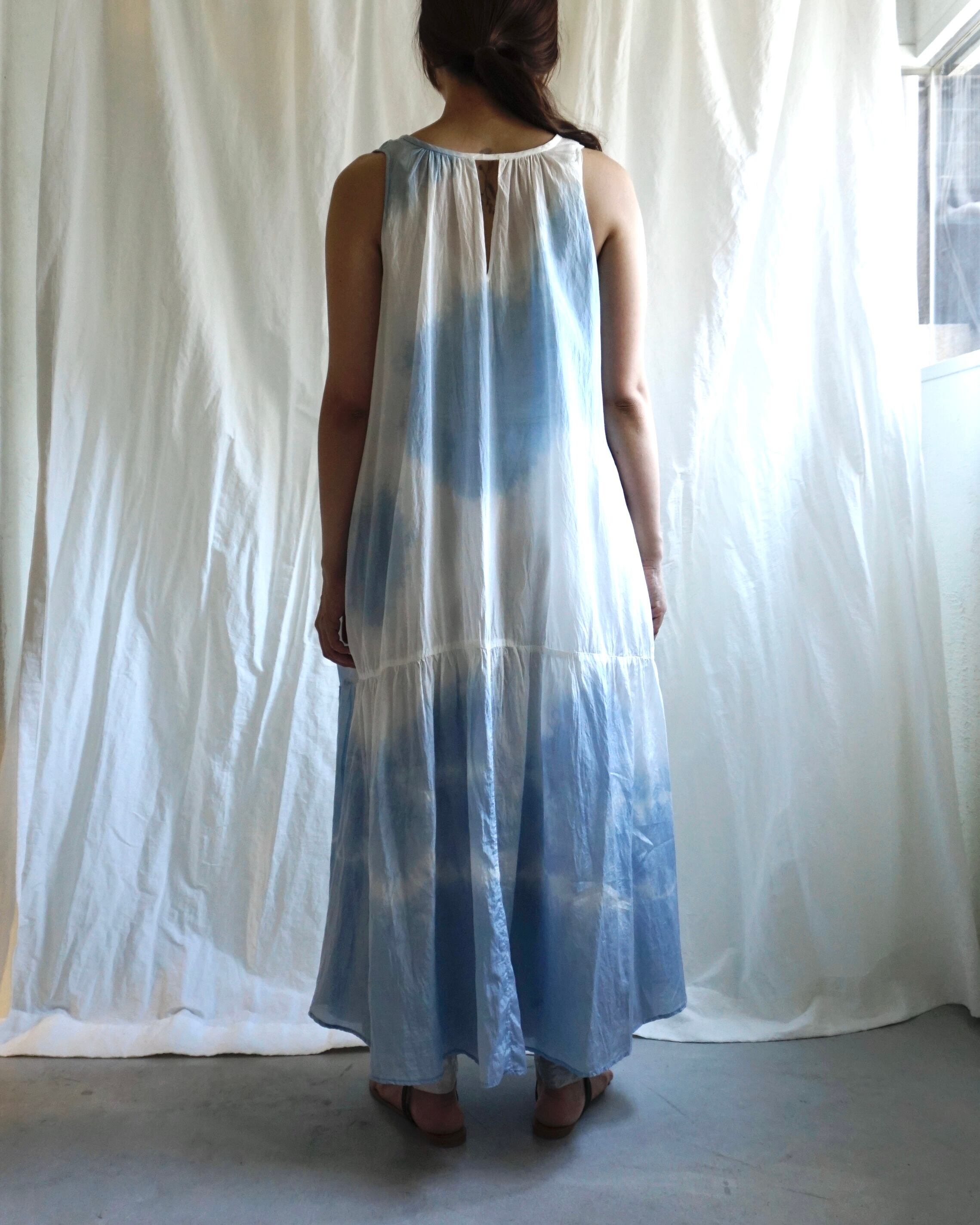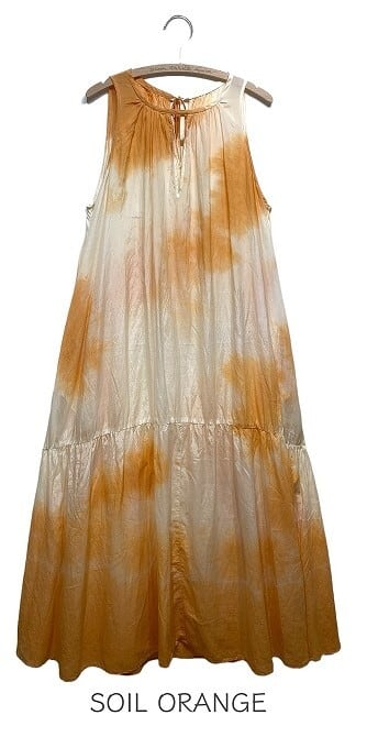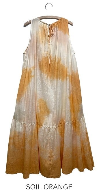 ムラ染めの前後着用可能な綿シルクワンピース。