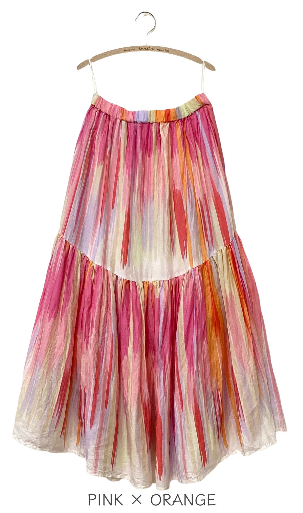 【水彩手書きストライプティアードスカート】SKIRT 063